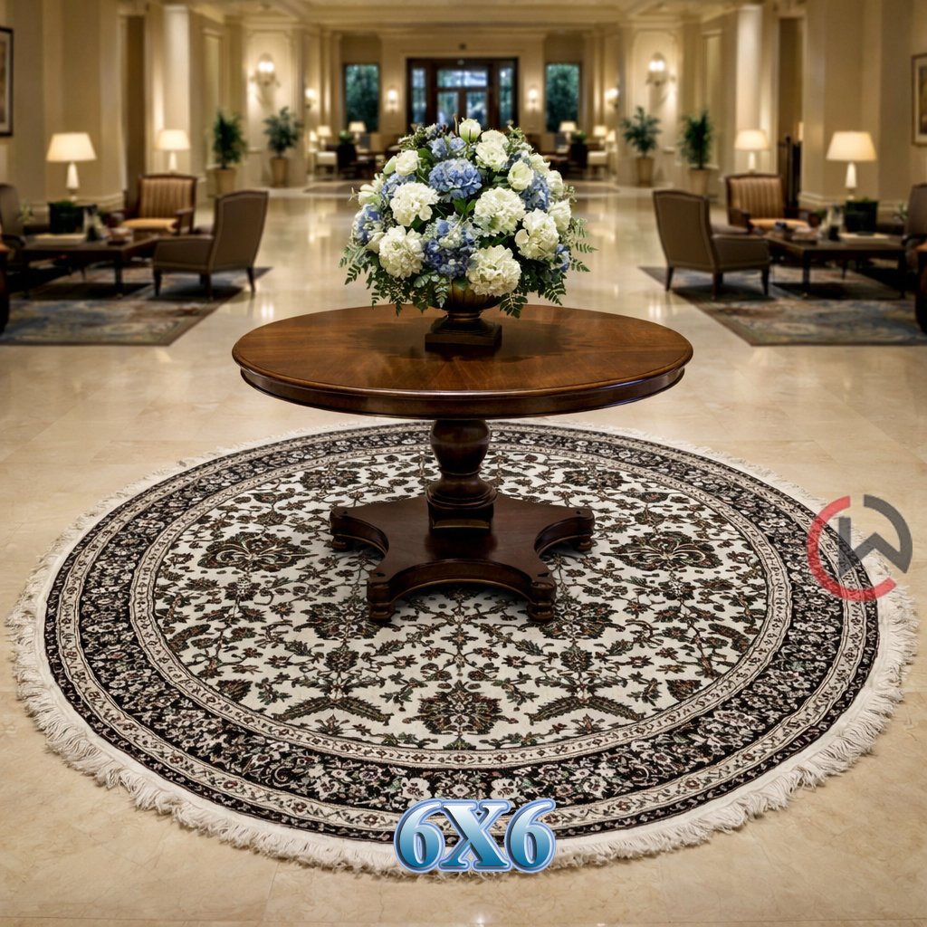 Kashmiri Persian Design Carpet for Living Room Bedroom and for Hall | Machine woven Designer Anti Skid Carpets 6 Feet X 6 Feet Diameter